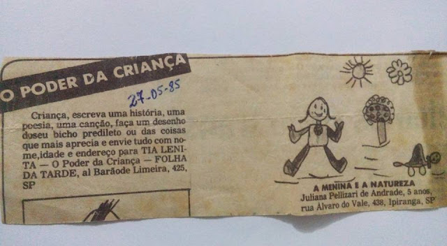 seus dados para a Tia Lenita, que a arte poderia sair no jornal Folha da Tarde – Folhinha.